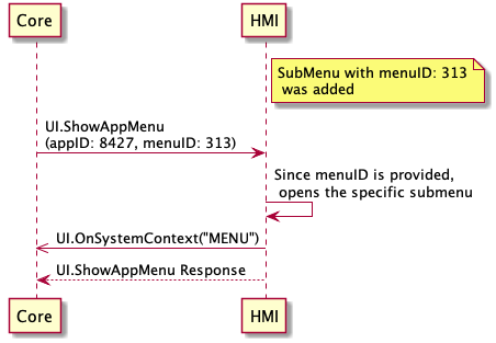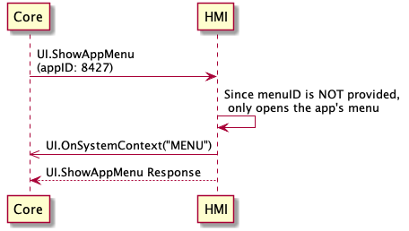 { "id" : 120, "jsonrpc" : "2.0", "method" : "UI.ShowAppMenu", "params" : { "menuID" : 313, "appID" : 8726 } }