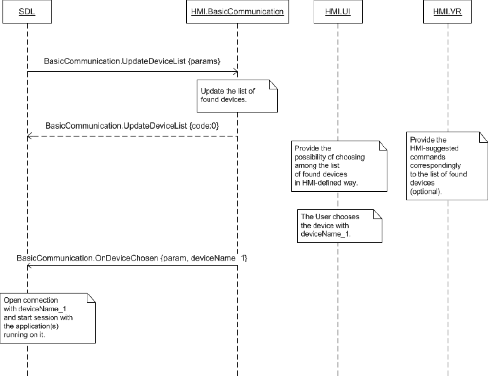 On Receipt of this notification SDL will open the connected with the named device and start sessions with the compatible SDL applications running on the device.
