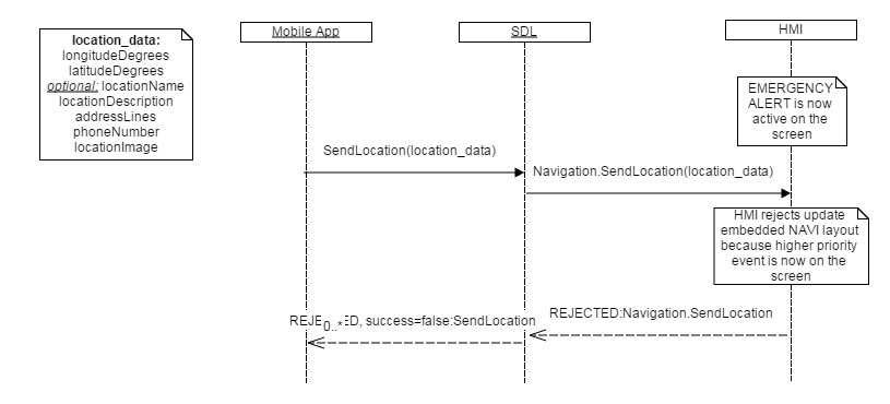 5. Respond with REJECTED result code to SDL in case HMI is currently busy with a higher-priority event or other reasons defined for the mentioned resultCode by HMI.