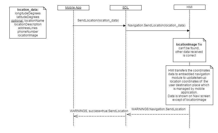 { "id" : 138, "jsonrpc" : "2.0", "method" : "Navigation.SendLocation", "params" : { "longitudeDegrees" : 139.34, "latitudeDegrees" : 35.36, "locationName" : "Ford Repair", "locationImage" : { "value" : "tmp/SDL/app/Navi/12345.jpg", "imageType" : DYNAMIC } } }