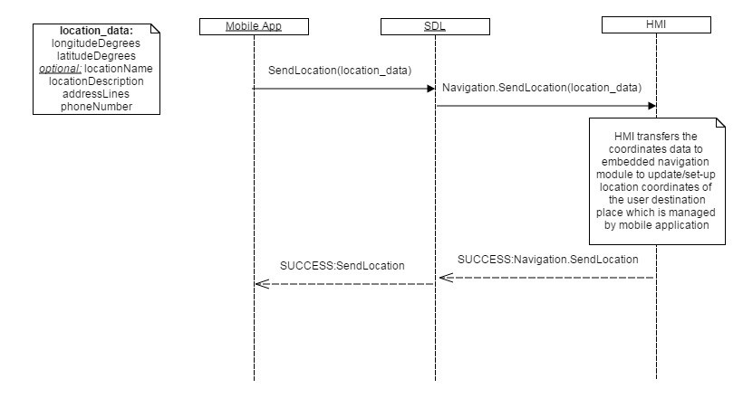 1. Transfer data received from SDL to navigation embedded module. Navigation embedded HU system should update the location data on the embedded navi screen.