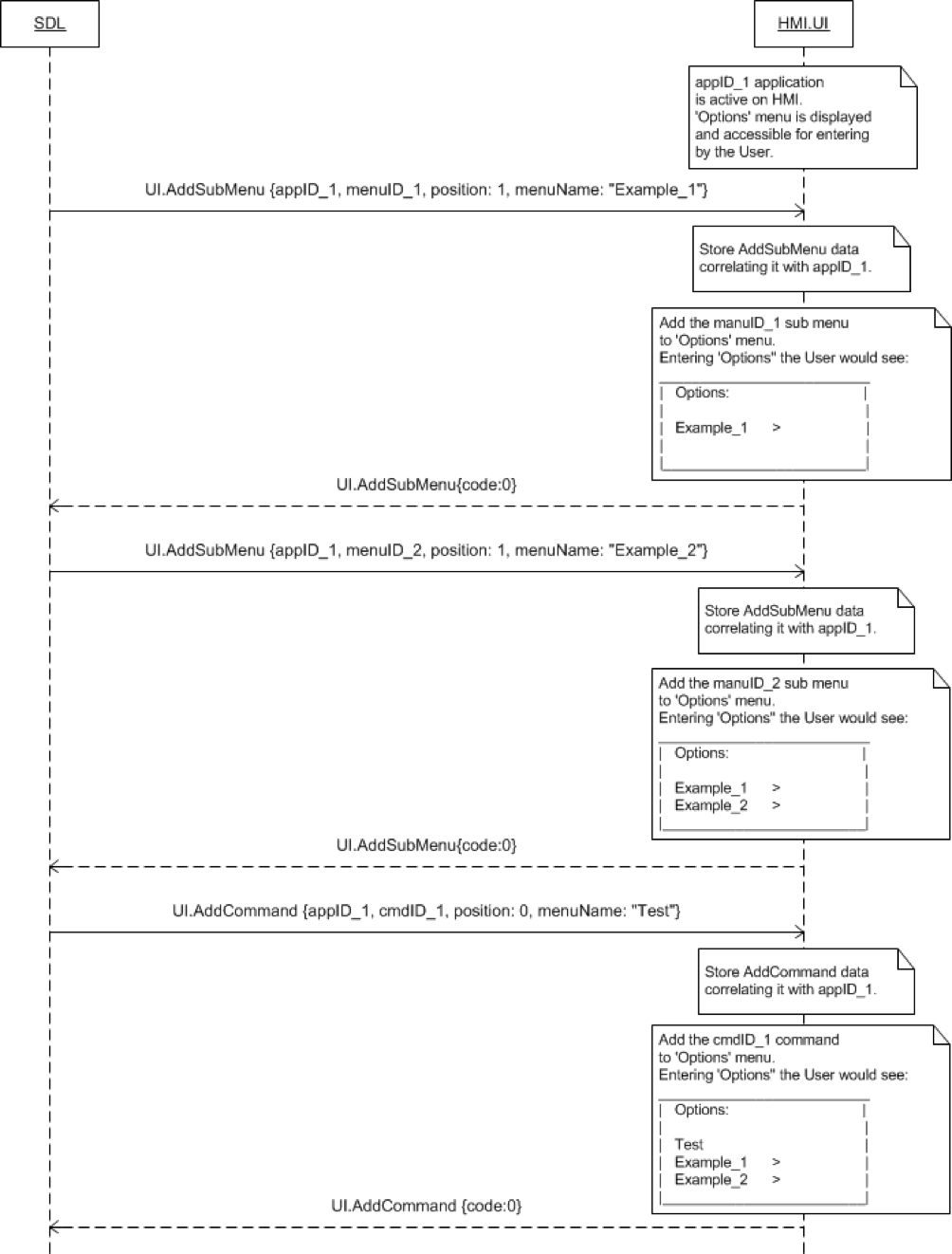 2. If the user selects a sub menu item from the application's menu, the HMI must display all commands added via UI.AddCommand which share a menuParams.parentID with the menu's menuID