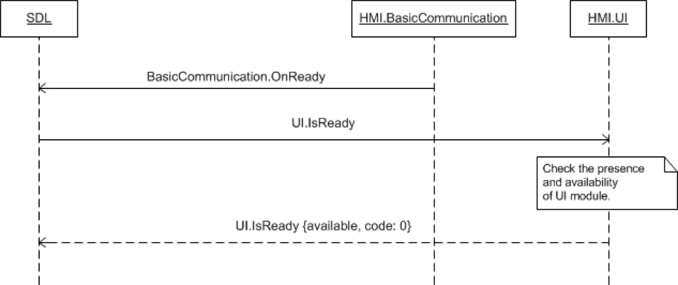UI.IsReady request after HMI confirms its readiness via BC.OnReady notification."available":false, SDL will not further communicate over UI interface with HMI.The request does not have specific parameters.