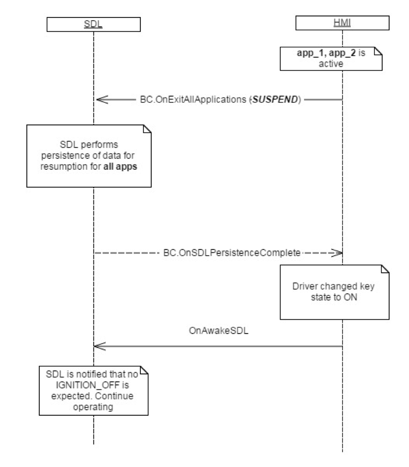 This notification is sent to SDL to notify that there won't be IGNITION_OFF sent after OnExitAllApplications(SUSPEND), which was previously sent by the HMI.