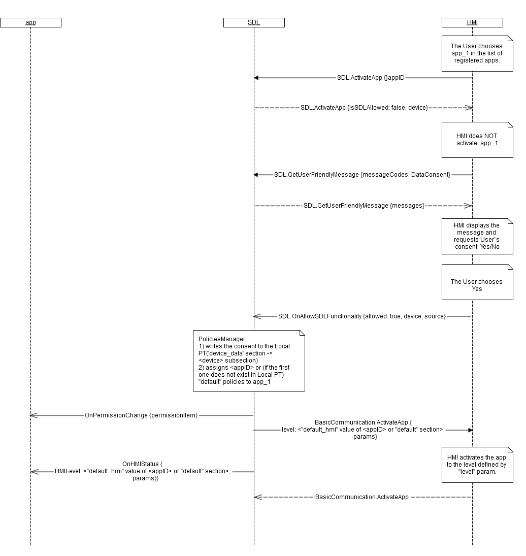 1) Initiate the sequence of device data consent on getting OnSDLConsentNeeded.